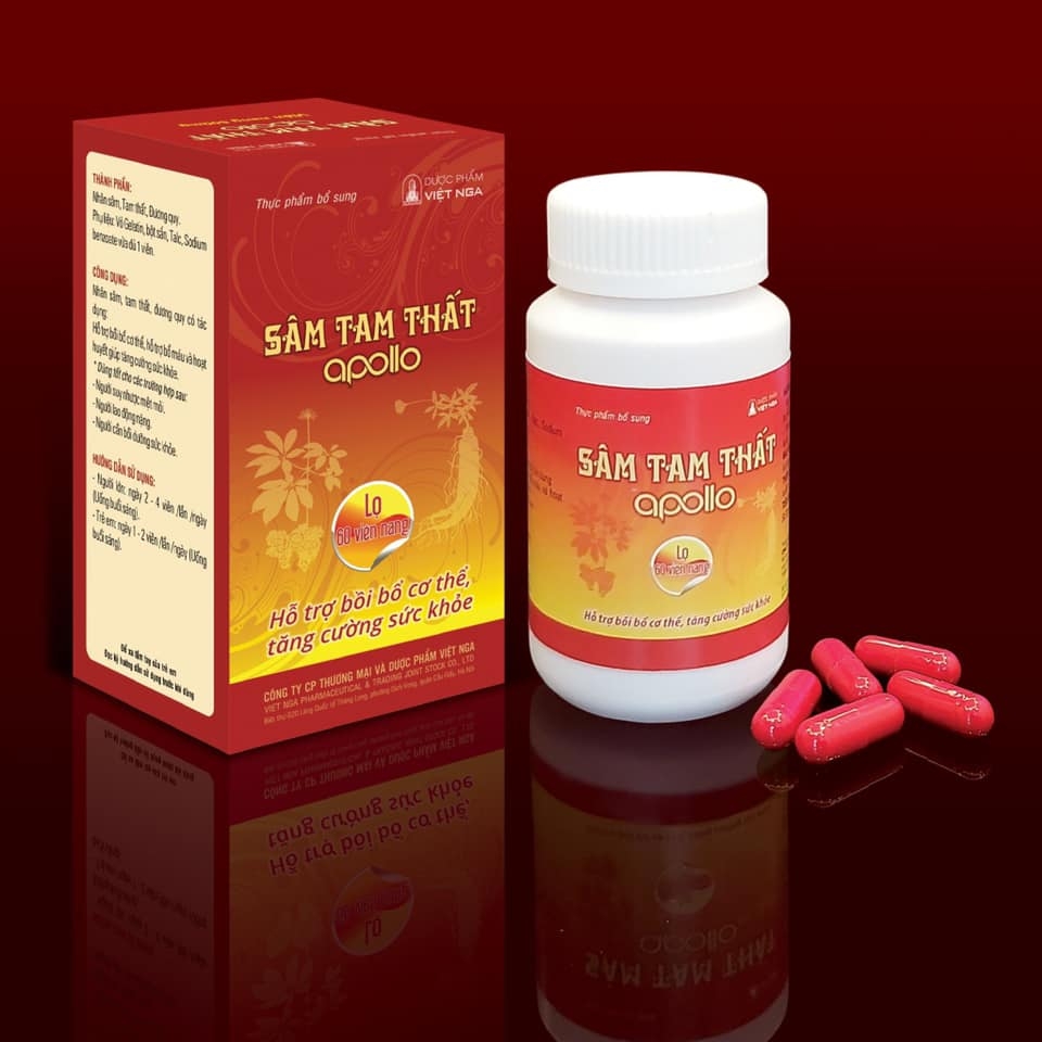 1. Thành phần: Nhân sâm, Tam Thất, Đương Quy. Phụ liệu: Vỏ Gelatin, bột Sắn, Talc, Sodium benzoate vừa đủ 1 viên.